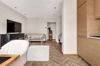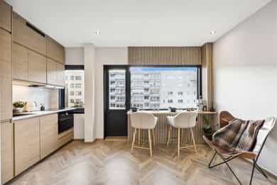 Velkommen til Vestheimgata 8! Dette er en stilren og lys 1-roms selveierleilighet i 5. etasje med heis, beliggende i en velholdt funkisgård på populære Frogner. Her bor du tilbaketrukket og fredelig - samtidig nært alt det beste bydelen har å by på. - God og arealeffektiv planløsning - Sydvestvendt balkong med sol fra formiddag til kveld, vendt mot bakgård - Nymalte flater i 2024 - Nytt gulv lagt i 2024 - Stilrent kjøkken fra 2024 - Bad pusset opp i 2019 - Oppvarming og fibernett inkl. i felleskost. - Heis - Romslig felles takterrasse med sol hele dagen - Alt av servicetilbud i gangavstand - inkl. dagligvare, apotek, SATS, trikk og buss - Tog, t-bane og Flytoget tar deg til Nationaltheatret på ca. 10 min - Gangavstand til Frognerparken, Bygdøy Allé, Aker Brygge og Slottsparken