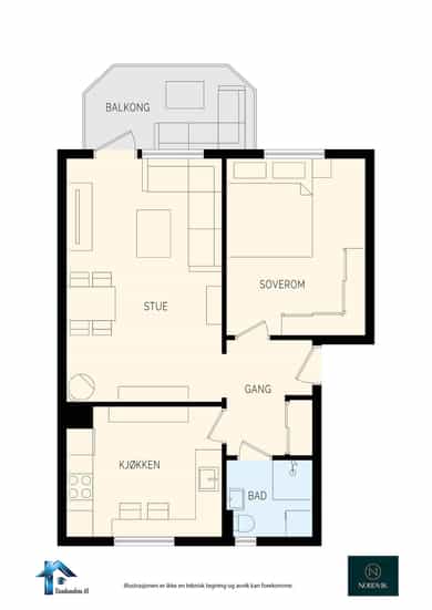 BRA-i: 52 kvm. Entré, stue, kjøkken, soverom, bad