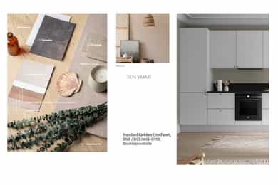 Varme jordtoner bringer naturen inn i boligen din og er ment å skape en rolig og avslappende atmosfære. Vi håper de rolige og varme jordtonene kan bidra til å finne roen når du kommer hjem. Kjøkkenfrontene får en rengjøringsvennlig, glatt og hvit overflate, og benkeplaten får en mørk, rustikk effekt. Parkett i lys eik. Innredning på bad i tilsvarende farge som kjøkken. Flis til badegulv er planlagt i størrelse 60x60cm, og flis til vegg i 60x30cm. Flis i dusjnisje blir 10x10cm. Det tas forbehold om alternative leverandører. Illustrasjonsfoto