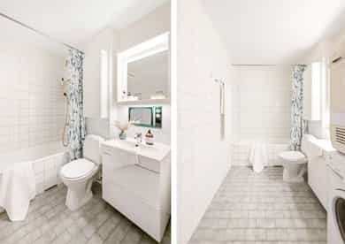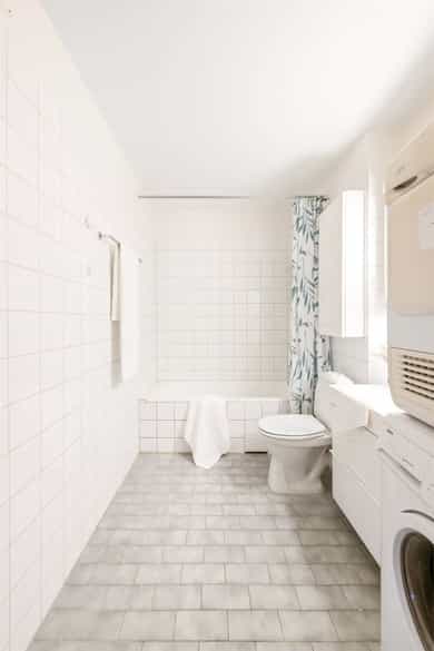Oppvaskmaskin og trommel på baderom.