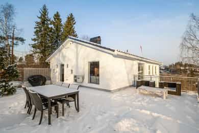 Stor og innbydende enebolig o. 2 plan beliggende i et populært og barnevennlig boligområde på Bekkestua. Boligen ligger usjenert til på høydedrag med flott vidstrakt utsikt. Kort gangavstand til Haslum barneskole, Bekkestua barne- og ungdomsskole, Nadderud VGS, Oslo International School og Norges Toppidrettsgymnas. Få min til nærbutikk og hyggelige Bekkestua sentrum m/butikker og spisesteder samt off. kommunikasjon, dvs. buss, flybuss, T-bane og trikk. Fremhevede kvaliteter Innholdsrik enebolig m. oppussingsbehov på utsiktstomt Stor solrik tomt på ca. 2000m² Fantastisk utsikt utover Bekkestua og indre Oslofjord Familievennlig planløsning, 4 sov., 2 bad Optimale solforhold fra tidlig morgen til sen kveld Integrert dobbelgarasje + frittstående garasje Tilbaketrukket og rolig i blindvei