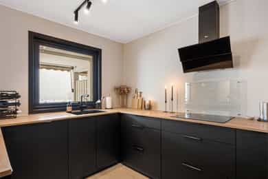 Integrerte hvitevarer på kjøkken medfølger.