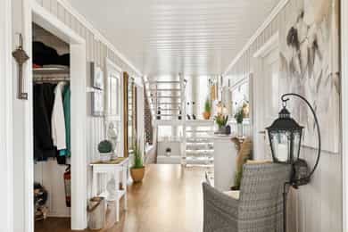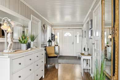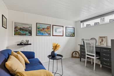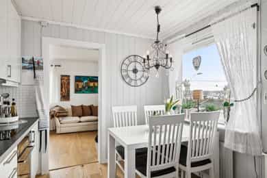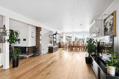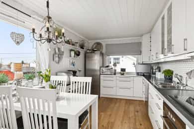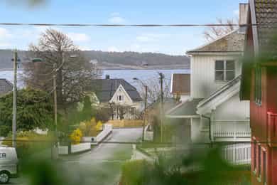 # Pent opparbeidet hjørnetomt med gode solforhold # Sjøgløtt med lukten av bakevarer # Ca +300 meter så kan du mageplaske deg rett ut i havet # Sjekk romstørrelsen og den gode flyten i boligen. Den passer for de aller fleste familier # 2-3 soverom i dag, kan enkelt bli til mange flere. Du skjønner det når du ser planløsningen og kommer deg inn i boligen # Store muligheter for å utvikle kjeller mye mer enn hva som er gjort i dag. Sjekk ut noen av disse mulighetene. Høyt under taket og store rom Heisann, Simen Smith Ringdal fra NORDVIK BOLIG her. Nå har jeg gleden av å presentere en sånn bolig man bare liker med en gang man kommer inn. Her er det veldig mye bra, og i tillegg er det fortsatt mye potensial og utvikle boligen ytterligere. Fordelaktig planløsning og mange rom for storfamilien