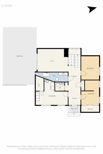 Oppgitte arealer er hentet fra vedlagte takst og megler har ikke kontrollmålt boligen. Kommuneplanen gjelder foran reguleringsplaner, bebyggelsesplaner og kommuneplaner, i den grad slik plan strider mot kommuneplanens innhold. Det gjøres oppmerksom på at vedlagte plantegninger ikke stemmer hva gjelder faktisk innredning og møblering etc. Den er ikke målbar, samt at avvik og feil kan forekomme. Eiendommen vaskes ikke ytterligere etter utflytting, kun normalt renhold vil bli foretatt såfremt ikke annet fremsettes i bud. Kjøper og selger er forpliktet til å undertegne standard kjøpekontrakt utarbeidet av Nordvik i forbindelse med eiendomstransaksjonen. Kjøpekontrakt kan besiktiges hos eiendomsmegler før bud inngis. Kontakt eiendomsmegler for spørsmål.