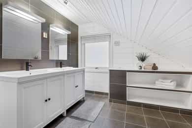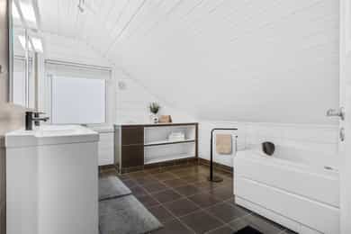 Megler gjør oppmerksom: - Takstmann har opplyst at; "To av soverom på loftet er ca 6m². Rommene oppfyller kravene til størrelse i byggeforskriften av 15. desember 1949, denne forskriften var ikke gjeldende i Senja/Lenvik på oppføringstidspunktet, men vi legger til grunn at det ble ansett som god håndverksskikk å bygge soverommene med denne størrelsen. Det anbefales ytterligere kontroll opp mot bygningsmyndigheter om rommenes benevnelse og bruk." Kjøper og selger er forpliktet til å undertegne standard kjøpekontrakt utarbeidet av Nordvik i forbindelse med eiendomstransaksjonen. Kjøpekontrakt kan besiktiges hos eiendomsmegler før bud inngis. Kontakt eiendomsmegler for spørsmål. Utdrag fra tilstandsrapport: Tilstanden vurderes med ulike tilstandsgrader: TILSTANDSGRAD 0, TG0: INGEN AVVIK TILSTANDSGRAD 1, TG1: MINDRE ELLER MODERATE AVVIK TILSTANDSGRAD 2, TG2: VESENTLIGE AVVIK TILSTANDSGRAD 3, TG3: STORE ELLER ALVORLIGE AVVIK TILSTANDSGRAD IU, TGIU: IKKE UNDERSØKT/IKKE TILGJENGELIG Følgende har fått TG3 (store eller alvorlige avvik): Nedløp og beslag Vurdering av avvik: Nedløp er avsluttet med utkaster over terreng, noe som medfører økt vannpåkjenning mot drenering og grunnmur. Det er påvist punktvis lekkasje på takrennen samt nedbøyninger. Det er ikke montert snøfangere på taket der folk kan ferdes, til tross for at dette var et krav ved tilbygging av boligen. Konsekvens/tiltak: Det bør etableres en løsning for bortledning av vann fra nedløp, slik at vannet ledes bort fra grunnmur og drenering for å unngå fuktskader og økt belastning på dreneringssystemet. Punktvise lekkasjer og nedbøyninger på takrennen bør utbedres for å sikre korrekt avrenning og forhindre vannskader på bygningen. Snøfangere bør monteres på takflater der personer kan ferdes, for å redusere risikoen for snø- og isras som kan medføre personskade eller skade på eiendom. Kostnadsestimat: 20 000 - 100 000 Balkong Vurdering av avvik: Det er påvist fukt- og råteskader i konstruksjonen ved innfestingen til rekkverket, noe som svekker både styrke og sikkerhet. Rekkverket er for lavt i forhold til dagens krav og oppfyller dermed ikke gjeldende forskrifter. Åpningene i rekkverket er heller ikke i samsvar med dagens forskrifter, noe som utgjør en risiko for fallulykker. Tekkingen på balkongen har utettheter som kan føre til vanninntrenging og ytterligere skader. Konstruksjonen har omfattende skjevheter, og ved normal gange oppleves merkbar bevegelse i konstruksjonen, noe som indikerer redusert stabilitet. Konsekvens/tiltak: Jeg anbefaler at hele konstruksjonen rives og bygges opp på nytt. Balkongen må ikke benyttes før den er utbedret, da dagens tilstand utgjør en betydelig risiko for personskade. Råteskadede konstruksjoner må skiftes ut for å gjenopprette styrke og sikkerhet. Rekkverkets høyde og åpninger må utbedres for å tilfredsstille gjeldende forskriftskrav, slik at risikoen for fallulykker reduseres. Tekkingen på balkongen må utbedres for å hindre vanninntrenging og ytterligere skader på konstruksjonen. Konstruksjonen bør forsterkes og rettes opp for å sikre tilstrekkelig stabilitet og forhindre ytterligere bevegelser. Kostnadsestimat: 100 000 - 200 000 Pipe og ildsted Vurdering av avvik: Det er ikke tilstrekkelig antall synlige sider av pipen, da pipen er tildekket av kjøkkeninnredning på én side. Det er påvist riss og løs murpuss på pipen i underetasjen. Konsekvens/tiltak: Det bør sørges for at pipen gjøres tilgjengelig for inspeksjon på alle sider, samt at riss og løs murpuss utbedres. Konsekvensen av utilstrekkelig tilgjengelighet og skader på pipen er økt risiko for skjulte skader, redusert brannsikkerhet og mulig forringelse av konstruksjonen. Kostnadsestimat: 20 000 - 100 000 Vaskerom Vurdering av avvik: Våtrommet må oppgraderes for å tåle normal bruk etter dagens krav. Veggene har malte sponplater og baderomsplater, og gulvet har malt betong og sponplater. Det er ikke tilfredsstillende tettesjikt/membran på vegger eller gulv, noe som medfører at overflatene ikke vil tåle vannbelastning. Det er ikke membran/tettesjikt på gulvet og veggene. Det er ikke tilstrekkelig fall på gulvet. Rommet er ventilert med mekanisk vifte. Det må gjøres oppgradering av våtrommets tettesjikt/membran for at våtrommet skal tåle normal bruk etter dagens krav (tett våtsone). En samlet TG 3 for rommet er satt med bakgrunn i manglende tetthet i våtsonen. Ved renovering av rommet må det gjennomføres en helhetlig prosjektering av våtrommet. Konsekvens/tiltak: Det må etableres tilfredsstillende tettesjikt/membran på både vegger og gulv, samt sørges for tilstrekkelig fall mot sluk, for å sikre at våtrommet tåler normal vannbelastning og oppfyller dagens krav til våtsone. Manglende eller utilstrekkelig tettesjikt medfører økt risiko for vanninntrenging i konstruksjonen, noe som kan føre til fuktskader, sopp- og råteutvikling, samt kostbare reparasjoner. En helhetlig oppgradering og prosjektering av våtrommet må gjennomføres for å redusere risikoen for fremtidige skader. Kostnadsestimat: 200 000 - 500 000 Bad 1.etasje - Sluk, membran og tettesjikt Vurdering av avvik: Det foreligger ikke dokumentasjon på badet, noe som medfører usikkerhet om hvordan det er bygget opp og økt risiko for skjulte feil eller mangler. Det er påvist utettheter i overgangen mellom baderomsplater og sokkelflis. Det er ikke benyttet aluminiumslist, noe som gjør det vanskelig å oppnå en tett overgang mellom baderomsplatene og tettesjiktet til gulvet. Rundt sluket er det påvist en ikke-fagmessig utførelse av membran. Membranen er rynkete, noe som gjør at toppene er utsatt ved vask. Mer enn halvparten av forventet brukstid er passert på membranløsningen. Sluket er plassert under dusjkabinettet og har begrenset mulighet for inspeksjon og rengjøring. Konsekvens/tiltak: Det bør fremskaffes dokumentasjon på utførelsen av membran og tettesjikt for å redu