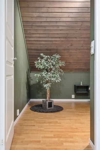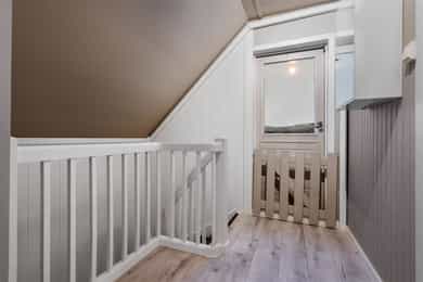 Byttet gulv i gangen i 2.etasje og på det ene soverommet.