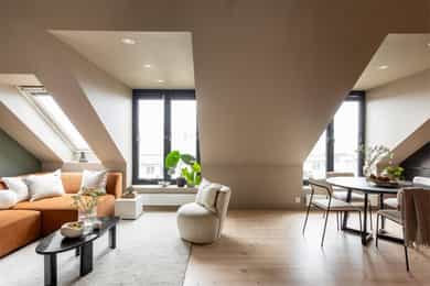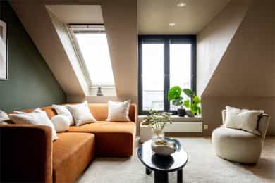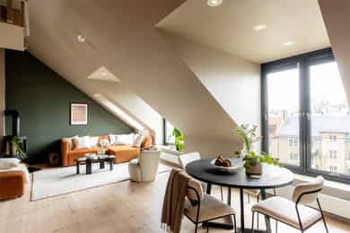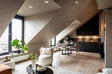 Nordvik v/ Henrik Carlyle har gleden av å presentere Thereses gate 3E - en lys og unik 2-roms toppleilighet med attraktiv og sentral beliggenhet på Bislett/Adamstuen. Leiligheten har en innholdsrik og godt utnyttet planløsning som består av entré, stue med åpen kjøkkenløsning, bad, soverom og hems. Her får du god takhøyde, store vindusflater som slipper, samt flotte tregulv som gir boligen en lun og stilfull atmosfære. Beliggenheten høyt og tilbaketrukket i byggets 5. etasje gir en luftig og skjermet følelse. Her bor du stille og rolig med kort vei til "alt". Fra den private takterrassen kan du nyte en nydelig utsikt og gode solforhold -Attraktiv loftsleilighet med privat takterrasse -Beliggenhet i indre gårdsrom -Kjøkken 2018 -Bad 2018 -Slipt gulv i 2026 -Lave felleskostnader Velkommen!