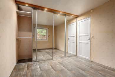 Det følger med en enkelt garasje uten port.