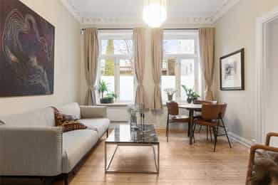 Klassisk, sjarmerende og romslig 2-roms beliggende i en ettertraktet og tilbaketrukket gate midt på St. Hanshaugen. Leiligheten ligger i en ærverdig bygård fra slutten av 1800-tallet med umiddelbar nærhet til den populære parken, offentlig kommunikasjon og alt av byens fasiliteter. Leiligheten har en godt utnyttet planløsning og inneholder entré, separat kjøkken, innbydende stue, stort soverom, kontor og bad.