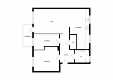 BRA-i: 64 kvm. Entrè/gang, to soverom, bad, garderobe, stue/kjøkken.
