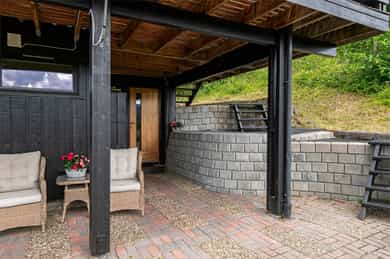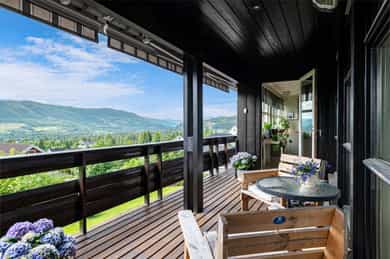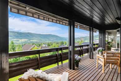 • Romslig dels overbygget terrasse med terrassemarkiser og adkomst fra stue og kjøkken.