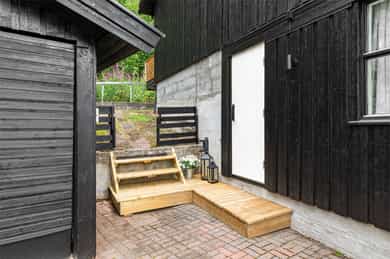 • Pen hage og uteområde med belegningsstein i adkomst og gårdsplass. Velkommen til visning!