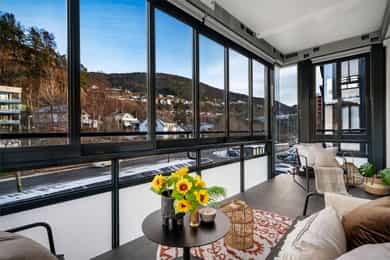 Skap din drømmebolig! Innholdsrik 3-roms m/13m² innglasset balkong. Balansert ventilasjon. Mulighet for garasjeplass