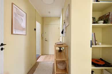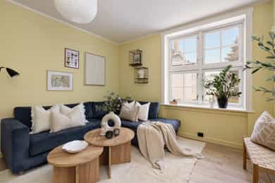 Leiligheten inneholder: Entré, stue, kjøkken, soverom og baderom. Entré: Velkommen inn! En lys og innbydende entré som gir et godt førsteinntrykk av boligen. God plass til sko og yttertøy. Stue: Lys og hyggelig stue med god plass til sofaseksjon med tilhørende møblement og spisebord. Store vindusflater som gir rikelig med luft og lys. Kjøkken: Separat og romslig kjøkken som ble overflate oppusset i 2021 og 2025. Kjøkkenet har innredning med glatte fronter. Benkeplaten er av eik, foliert med marmor kontakfilm. Det er kjøl/fryseskap, oppvaskmaskin, platetopp og stekeovn. Det er kjøkkenventilator med kullfilter. Soverom: Romslig soverom med plass til dobbeltseng og masse oppbevaringsplass i garderobeløsning. Baderom: Baderom fra 2025 med varmekabler i gulv og opplegg for vaskemaskin. Rommet har innredning med servant, veggmontert toalett, dusjvegger/hjørne.