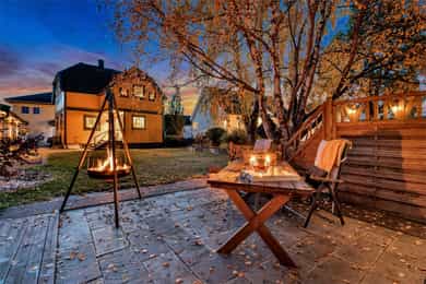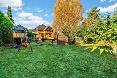 Unik mulighet! Meget sjarmerende enebolig med dobbeltgarasje, usjenerte uteplasser og skjermet, koselig hage!
