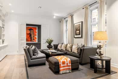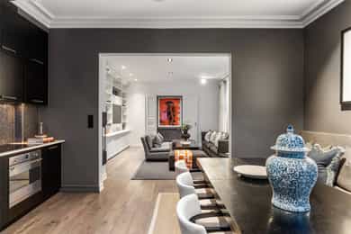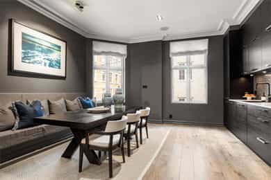 Praktfull og gjennomgående hjørneleilighet med flotte detaljer og imponerende takhøyde i vakker klassisk bygård. Leiligheten har en meget god planløsning, og den fremstår som svært gjennomført med smakfulle farge- og materialvalg. INFO: - Peis - Skjermet sydvendt balkong - 2 store og delikate baderom - 2 soverom. Masteravdeling med balkong og ensuite bad mot rolig bakgård - Flotte plassbygde skap/hyller og svært godt med skapplass - Plass til stor sofagruppe i stuen, og stor spisegruppe på kjøkken/spisestue - Kontor/soverom med både plassbygd daybed og plass til hjemmekontorløsning (evt. barneseng) - Veldrevet sameie Kun 2-3 min til trikken, søndagsåpen Joker, Skillebekk sushi og Tinkern utetrening. Et steinkast unna Åpent bakeri og Summit treningssenter.