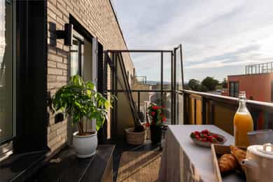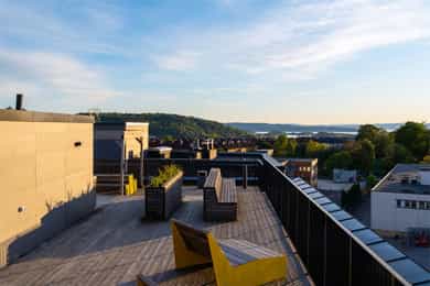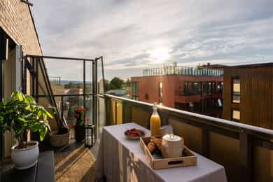 Lekker toppleilighet i bygg fra 2018 | Solrik balkong og flott utsikt | Heis | Felles takterrasse | Varme og Vv inkl.