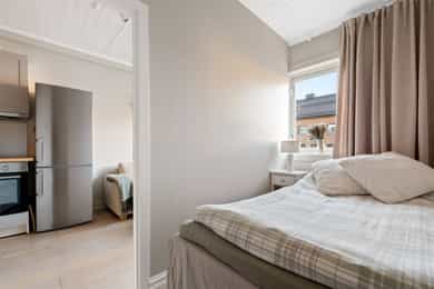 Velkommen til Kirkeveien 57! En lys og innbydende 2-roms selveierleilighet med sentral og attraktiv beliggenhet på Majorstuen. Leiligheten har en arealeffektiv planløsning og holder god standard. Perfekt leilighet for deg som ønsker et bredt utvalg av kollektivmuligheter, parker, matbutikker, treningssenter, spisesteder og shopping i umiddelbar nærhet! Høydepunkter: - Varmtvann, fyring og internett er inkludert i felleskostnadene - Lave felleskostnader på kr 3.312,- - Ny radiator fra 2025 - Kjøkken fra 2018 - Røropplegg og bad rehabilitert i regi av sameiet 2007 - Svært lavt strømforbruk, ca. 1 500 kWh i året - Koselig soverom - Kjellerbod - Fellesvaskeri - Felles takterrasse med svært gode solforhold - Kort vei til "alt" Oslo har å by på!