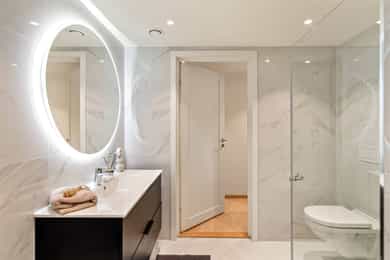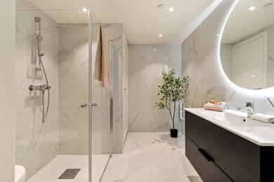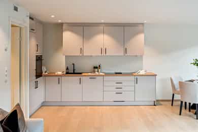 Opplev romsligheten og komforten i denne drømmeleiligheten! Vannbåren gulvvarme fra bergvarme i gang, stue og kjøkken legger til rette for behagelig inneklima og sparte strømkostnader! Med varme i gulvet kan du tråkke rundt barbeint på en jevn og varm overflate. God plass for å sette inn skap, for tøye ditt, og du kan holde orden og organisasjon i leiligheten. Stuen og kjøkkenet er i en åpen løsning som gir en følelse av inkludering og samhørighet. Med et anerkjent Keo-kjøkken kan du være sikker på at du får et tyskprodusert kjøkken av høy kvalitet som tilbyr et bredt spekter av personlig tilpasning. Med stor benke- og skapplass, vil dette kjøkkenet gi deg all plassen du trenger for å lage mat og underholde gjester med stil. Det er lagt vekt på detaljer som gir et moderne preg i leiligheten. Mye benke- og skapplass er med på å gjøre dette til et drømmekjøkken. Fra stuen kan du gå rett ut på balkongen og nyte ettermiddags- og kveldssol. Balkongen har en romslig størrelse, noe som gir deg god plass til å møblere med både bord og stoler samt en grill for å lage herlige måltider ute. Tenk deg å kunne slappe av på din egen balkong og nyte solen mens du koser deg med et glass vin og god mat med venner og familie! Denne balkongen vil garantert bli et populært sted i leiligheten, og vil skape en perfekt atmosfære for koselige sommerkvelder og avslappende helger. Det lekre baderommet har elegante 60x60 fliser som gir en moderne og stilig følelse, og er den perfekte kombinasjonen av funksjonalitet og design. Baderomsinnredningen består av en stilren servant i innredning med underskuffer, overspeil med belysning som gir en flott atmosfære, dusjhjørne for en rask og praktisk dusj, vegghengt toalett som gir et elegant og luftig preg, og opplegg for vaskemaskin. Dette baderommet vil garantert imponere deg og dine gjester, og vil gi deg en følelse av luksus og velvære hver gang du går inn på badet. Gjestetoalett i gangen, som er både praktisk og hyggelig for dine gjester! Med denne smarte plasseringen vil dine gjester enkelt kunne finne toalettet. Med sin lyse og luftige atmosfære, vil soverommene gi deg den perfekte følelsen av fred og ro. Her kan du glede deg over å ha god plass til å plassere en god og komfortabel seng, samt nattbord og et garderobeskap for å oppbevare alle dine klær.