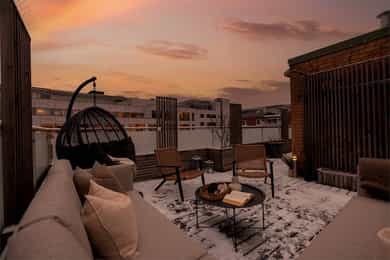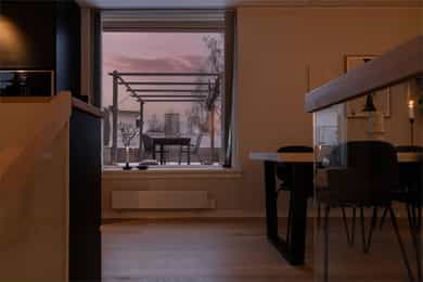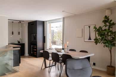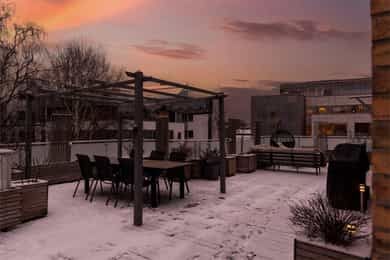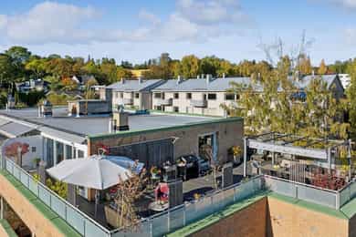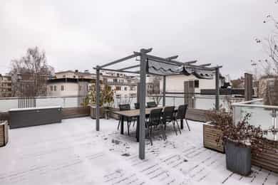 Madserud | Gjennomgående 3-roms penthouse med 90kvm solrik takterrasse | Dobbeltgarasje | Sentralt | Peis | Blindvei