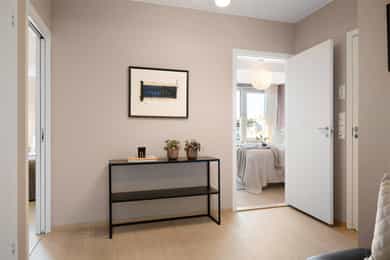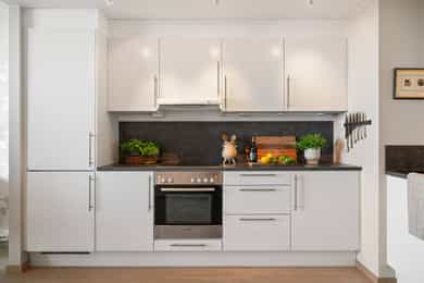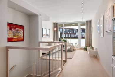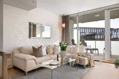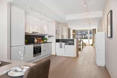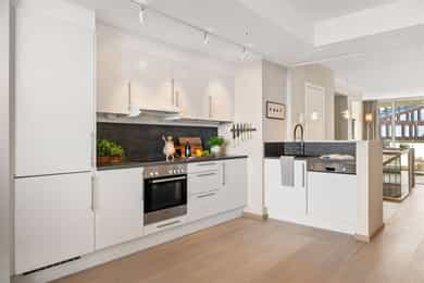 Lys og elegant leilighet med gjennomført planløsning og svært gode bokvaliteter. *Boligen er godkjent med tre soverom og fremstår romslig med en innbydende stue preget av rikelig lysinnslipp. Det funksjonelle kjøkkenet ligger naturlig tilknyttet oppholdsrommet og bidrar til en sosial og moderne løsning. Leiligheten har to balkonger som gir solrike og anvendelige uteplasser med gode muligheter for både avslapning og hyggelige sammenkomster. Praktisk parkering i felles garasje med elbillading via Smartly (Lyse). Godkjent med tre soverom Elegant og romslig stue med rikelig naturlig lys To balkonger som gir eksklusive uteplasser Flislagt bad med varmekabler Parkeringsplass i felles garasje m/ elbelbillading (Smartly/Lyse) Ettertraktet og sentrumsnær beliggenhet
