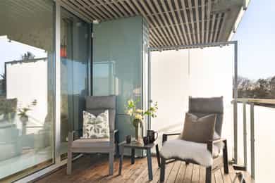 Leiligheten har gjennomgående gode solforhold med sin øst/vest-orientering. Den største balkongen nyter sol fra ettermiddag til sen kveld, ca. kl. 14-22, og fungerer som en naturlig forlengelse av oppholdsrommet på solrike dager. Den mindre balkongen vender mot øst og byr på behagelig morgen- og formiddagssol -perfekt for dagens første kaffe med tilhørende utsikt over innseilingen til Stavanger. Solforholdene gir en sjelden kvalitet som har vært høyt verdsatt av selger gjennom hele botiden