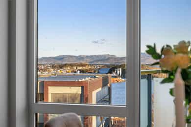 Eksklusiv leilighet over to plan med utsikt mot innseilingen | 2 soverom* |2 terrasser | Parkering | Elbillader