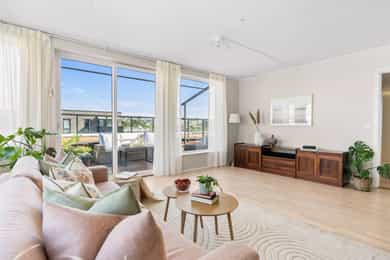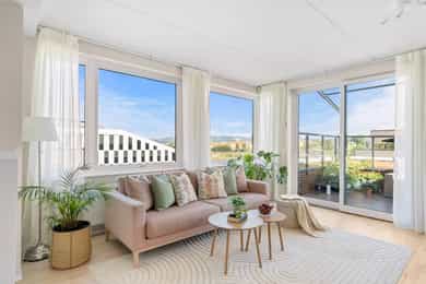Lys og meget delikat 4-roms med 33 m² privat takterrasse og utsikt |Ink. 2 garasjeplasser m/El |A-konto oppvarming inkl.