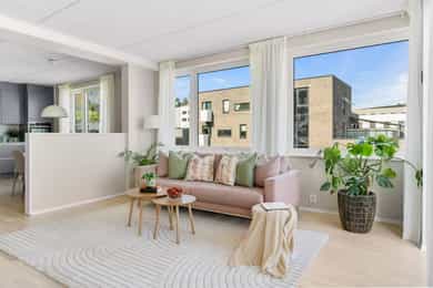 Moderne og stilren 4-roms i 8. etasje – sentral beliggenhet nær Sørenga, Bjørvika og flere populære byområder. Her får du en gjennomtenkt planløsning, kort vei til flotte rekreasjonsområder som Svartdalsparken og Ekebergsletta, samt enkel tilgang til kollektivtransport, servicetilbud og byens kulturliv – perfekt for både familier, par og urbane livsnytere. -Stor, privat takterrasse på ca. 33 m² m/ flott utsikt mot Holmenkollen -A-konto oppvarming og vv, kabel-tv og internett inkl. i felleskostnader -Bygg fra 2018 med nybyggkvaliteter -Østvendt luftebalkong på ca. 1 m² -Gåavstand til populære Vålerenga/Kampen -Felles takterrasse, sykkelbod og vognrom -Medfølger 2 garasjeplasser. 1 garasjeplass (ekstra bred) m/lader i underliggende anlegg m/heisadkomst og 1 garasjeplass i heissystem m/lader