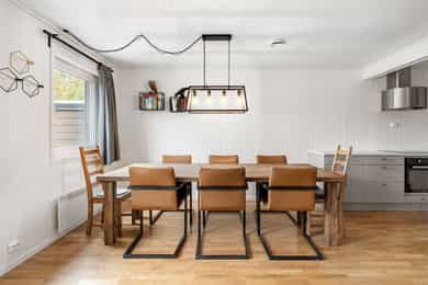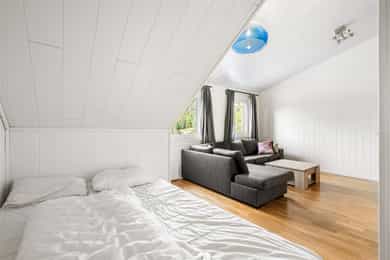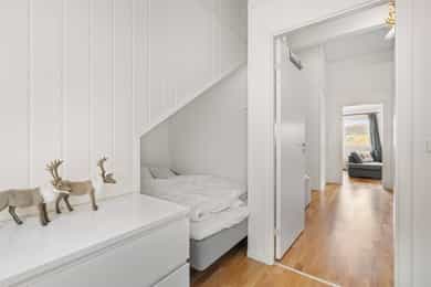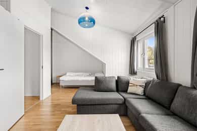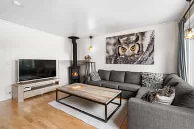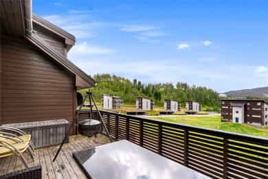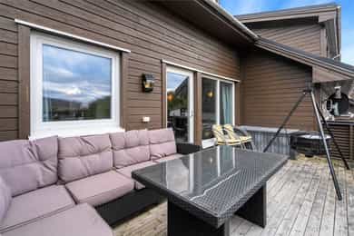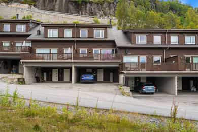 Øverst på Sinnestunet finner du denne fritidsboligen. Her bor man nesten øverst i rekken med gode solforhold og utsikt over nærområdet. Boligen ble bygget i 2018 og går over tre plan. Underetasjen består av dobbel carport, en rekke boder og vaskerom/toalettrom. Ellers er det stue, kjøkken, hovedsoverom, bad og terrasse i 1. etasje, samt to soverom, loftsstue og bad i øverste etasje. Det er både varmekabler og peis som varmer godt. Man har barneskitrekk like utenfor, og ellers kort vei til skitrekket og preparerte løyper i umiddelbar nærhet. Ellers har man Fjellstua like nede i veien, samt få minutters kjøring til GP-en med det en måtte trenge til hyttehandelen.