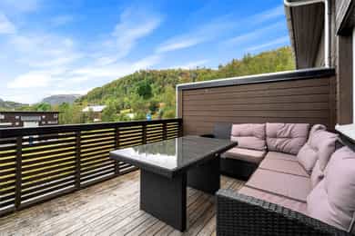 Boligen har sørvestvendt terrasse med gode solforhold fra ca. kl. 12 til sent på kveld.