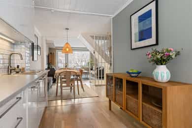 Selgere: Mads Anda Berg, Natalie Sara Therese Fagergren Når ble boligen overtatt av nåværende eier(e)? 2. januar 2019 Selges eiendommen på vegne av noen andre? Nei Selges eiendommen som et dødsbo? Nei Har du kjennskap til eiendommen? Ja Har du brukt eller vedlikeholdt boligen siste 12 måneder? Ja Er boligen forsikret med hus- eller annen bygningsforsikring? Ja Polisenummer: 84348454 / Forsikret i: Gjensidige. 1. Vet du om det har det blitt utført arbeid på bad/våtrom, enten i din eller tidligere eiertid? Ja, faglært. Firmaets navn og beskrivelse av arbeidet: Bad 2 etasje totaloppusset i 2015 av Nor-Pol Jedynak As. Ikke i vår eiertid. Silikonfuger i dusjsone byttet av Mr Fug november 2025. Bad kjeller oppusset av Oslo Oppussing i 2020. Totaloppussing bad. 1.1 Vet du om tettesjikt, membran eller sluk ble fornyet eller oppgradert? Ja, faglært - Firmaets navn og beskrivelse av arbeidet: Nor-Pol Jedynak 2015. Totaloppussing Oslo Oppussing 2020. Totaloppussing. 1.2 Vet du om det finnes dokumentasjon på hvordan bad eller vaskerom er bygget opp? Ja, faglært - Firmaets navn og beskrivelse av arbeidet: Nor-Pol Jedynak 2015. Totaloppussing Oslo Oppussing 2020. Totaloppussing. 2. Vet du om det er gjort endringer eller reparasjoner på tak, fasade, pipe/ildsted, terrasse, garasje, bod eller lignende, enten i din eller tidligere eiertid? Ja, faglært - Firmaets navn og beskrivelse av arbeidet: Ath Byggservice 2023- Nye vinduer første og andre etasje. Oslo Oppussing 2020- Nytt kjellervindu samt utvidet åpning i grunnmur for innsetting av enda et vindu. 4. Vet du om det er gjort arbeid på det elektriske anlegget, enten i din eller tidligere eiertid? Ja. Foreligger det en samsvarserklæring? Ja - Firmaets navn og beskrivelse av arbeidet: Leithe Christiansen: - Ny kurs til platetopp 2019 - Ny innmat sikringskap 2019 - Utestikk på hageside 2019 - Byttet stikkonktakt baderom andre etasje 2025 - Feilsøkt og reparert varmekabler gang 2025. Boligelektrikeren - Byttet termostat baderom andre etasje 2022 Stoplight Elektro - Flyttet sikringsskap fra felleskjeller og inn i rekkehus 2024 - Ny inntakssikring 2024 Elvern Elektro Elektroarbeid i forbindelse med kjelleroppussing 2020. 4.1 Vet du om det elektriske anlegget har blitt kontrollert? Nei. Eventuell kommentar: Tok en elsjekk ved innflytting i 2019. Utført av Leithe Christiansen. 5. Vet du om det er gjort arbeid på vann og avløp, enten i din eller tidligere eiertid? Ja, faglært. Firmaets navn og beskrivelse av arbeidet: Nor-Pol Jedynak 2015. Totaloppussing Oslo Oppussing 2020. Totaloppussing Jobb på vann og avløp i forbindelse med oppussing av baderommene. 6. Vet du om boligen eller eiendommen har blitt endret eller bygget ut etter opprinnelig byggeår, enten av deg eller tidligere eiere, herunder bruksendringer kjeller/loft etc.? Ja Var tiltaket søknadspliktig? Nei. Eventuell kommentar: Utbygget kjøkkendel. 11. Vet du om det er eller har vært feil ved bad/vaskerommet, f.eks sprekker, lekkasje, råte, lukt eller soppskader? Nei - Eventuell kommentar: Se punkt 13. 13. Vet du om det er eller har vært feil med dreneringen? Eller om det er eller har vært fukt, sopp eller råteskader i underetasjen, kjeller eller krypkjeller? (herunder også sameiet/borettslagets fellesarealer) Ja - Beskriv: Ved innflytting i 2019 ble det avdekket fukt og råte i kjelleretasje grunnet damptrykk fra grunn og kondensering på vegger samt ufaglært bygget baderom. Hele kjelleretasje ble åpnet opp og revet ned i løpet av 2019/2020 før den i sin helhet ble bygget opp igjen i 2020 av Oslo Oppussing. Gulv i bod ble revet bort i 2021 og det ble tatt et fuktsøk i bodvegg under friskluftventil grunnet tendenser til fuktdannelse. Etter fjerning av gulv har det vært tørt. 16. Vet du om det er eller har vært sprekker i mur/skjeve gulv/setningsskader eller liknende? Ja - Beskriv: Skade gulv i kjellerbod. 18. Vet du om det er, eller har vært, insekter eller skadedyr i boligen, eller i tilhørende bygninger? For eksempel skjeggkre, maur, biller, mus, rotter eller lignende. Ja - Beskriv: I forbindelse med kjellerfukten i 2019 beskrevet i punkt 13 var det mye sølvkre i kjelleretasje på det tidspunktet. Etter oppussing er det ikke funnet sølvkre. Det ble funnet 2 skjeggkre i en analyse innsendt Mycoteam i 2019, men etter en større deteksjon med limfeller ble det ikke fanget flere skjeggkre og en rapport fra Anticimex fra 07.2.20 sier "Det at det ikke ble fanget skjeggkre under den mest omfattende deteksjonen kan tyde på at det ikke er skjeggkre i boligen." Aldri vært rotter hos oss, men to av naboene helt på enden har hatt rotter i utbygd kjøkkendel og kjellerbod. 20. Vet du om det er eller har vært feil på tilbehøret som følger med eiendommen? Ja - Beskriv: En stk defekt dimmer i første etasje. Det er lagt varmefolie under gulv på kjøkken. Rett ved kjøleskapsdør er det en liten kvm det enten aldri er lagt folie eller så er folie defekt. Folie ble lagt av tidligere eier. 22. Vet du om det foreligger skaderapporter eller tilstandsvurderinger etc. om boligen? Ja - Oppgi type rapport og årstall: Tidligere eier utførte en fuktkontroll i kjeller 2016. Etter overtagelse i 2019 ble boligkjøperforsikring involvert og det ble utført rapporter fra både kjøper og selgers forsikring grunnet nevnte kjelleretasje. Merk at alle rapporter er utført fra tidligere kjeller som er revet ned. 23. Vet du om det er utført tidligere arealoppmålinger av boligen, eller om boligens areal er oppgitt i dokumenter som salgsoppgave, takstrapport, tilstandsrapport, byggesøknad eller lignende? Ja - Hvilket dokument og når er målingen foretatt? Når den ble solgt sist. 27. Vet du om det er forhold i nabolaget som medfører plager eller sjenanse som det kan være relevant for kjøper å vite om? Ja - Beskriv: Ny vannforsyning bygges til Oslo og sprengninger i tunnel kan oppleves som lett borrelyd. Ikke særlig til sjenanse og vannforsyningen er snart ferdigstilt. 30. 