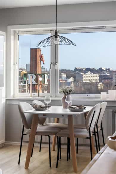 Velkommen til Thorvald Meyers gate 5, en lys og arealeffektiv leilighet høyt oppe i bygget, med store vindusflater, herlig utsyn og balkong med god plass til utemøbler. Leiligheten har en åpen stue-/kjøkkenløsning som gir fin romfølelse, kjøkken fra 2020 med integrerte hvitevarer og hyggelig spiseplass ved vinduet. Alkoven gir en naturlig, skjermet sone for seng. Badet er pusset opp i regi av borettslaget og fremstår delikat med fliser, varmekabler og opplegg for vaskemaskin. I tillegg disponeres bod i 4. etasje. Oppvarming via radiator/fjernvarme, og fyring/varmtvann er inkludert i fellesutgiftene. Beliggenhet på øvre Grünerløkka med Akerselva, caféer og butikker like ved. Velkommen til visning!