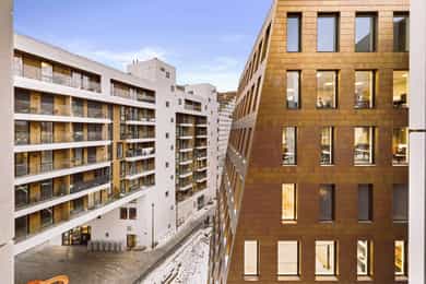 Rostockgata 50 har en svært sentral beliggenhet i Barcode-området, som opplever en blomstrende utvikling. Bjørvika er et moderne og vakkert nabolag med boliger, butikker, restauranter, serveringssteder, kontorbygg, kunst og kultur av høy klasse. Nærheten til vannet gjør det til et flott sted å bo, hvor man enkelt kan ta seg en svømmetur i sjøen, nyte kveldssolen, vandre langs havnepromenaden, besøke en fortauskafè eller oppsøke det brede spekteret av kulturopplevelser området byr på. Barcode i Bjørvika har kort avstand til alt du trenger, i tillegg til å by på imponerende arkitektur og et stadig mer pulserende byliv. I de første etasjene av Barcode-bygningene finner du et variert utvalg av butikker, restauranter, kafeer og kulturtilbud. Blant annet har du Espresso House, Bambus Sushi, Joe & The Juice, Åpent Bakeri, Stock, Vesper Bar, Vaaghals og den populære Nodee Barcode Sky. Hvis du tar trappene ned til kjelleren i Rostockgata 24, vil du finne en romslig Kiwi dagligvarebutikk, bare noen få skritt fra inngangen til blokken. Med trikken og bussen like i nærheten, og Oslo Sentralstasjon en kort spasertur unna, er det enkelt å komme seg rundt uansett hvor du skal. Elixia i "MAD-bygget" og Barry's Bootcamp i nabobygningen er de nærmeste treningssentrene. Området byr på flotte muligheter for turer og jogging, med attraksjoner som strandpromenaden, Middelalderparken, Ekebergåsen med skulpturpark, Akerselva og Svartdalsbekken. Sørenga sjøbad, med sine flotte bademuligheter, ligger bare en kort spasertur unna. Bjørvika er virkelig i ferd med å ta form, med boligprosjekter som Eufemias Hage, Dronninglunden, Eufemias Plass og Vannkunsten. Munchmuseet og Deichmanske bibliotek, i tillegg til Operaen, gir deg tilgang til flotte kulturopplevelser, og de ligger bare noen minutter unna. Uansett om du vil utforske fjorden med kajakk eller sykkel, eller du foretrekker å fordype deg i bøker og kunst, har Bjørvika alt du trenger mellom himmel og hav. Besøk områdets hjemmeside (https://www.boibjorvika.no) for mer spennende informasjon.
