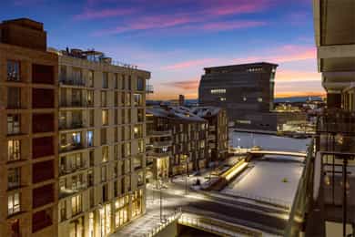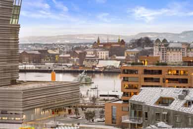 Lys, gjennomført og lekker 3-roms kanalleilighet med utsikt mot Munchmuseet| 7.etg |2020 |Felles takterrasse| TG1 på alt
