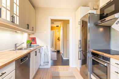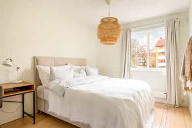 Henrik Carlyle v/ Nordvik har gleden av å presentere Åsensvingen 4B! En attraktiv og gjennomgående 3-roms andelsleilighet med sentral og attraktiv beliggenhet på Grefsen. Leiligheten har en god planløsning og består av en innbydende entré, hyggelig stue, separat kjøkken, to gode soverom og flislagt baderom. Det er også utgang til innglasset balkong. - Innglasset balkong på ca. 7 kvm - Originale tregulv - Vedovn i stuen - Store vindusflater som gir rikelig med luft og lys, vinduer fra 2022 - To gode soverom i hver sin ende av leiligheten - God lagringsplass i to kjellerboder og én loftsbod, totalt 18 kvm - Parkeringsleie etter venteliste* - Felles sykkelbod og vaskeri - Herlige fellesarealer med store grøntområder - Kort vei til kollektivtransport, dagligvarehandel og øvrige servicetilbud