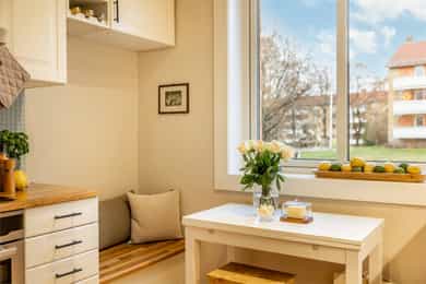 Attraktiv og gjennomgående 3R m/innglasset balkong 7 kvm - Vedovn - Vinduer 2022 - Parkeringsleie* - Originale tregulv