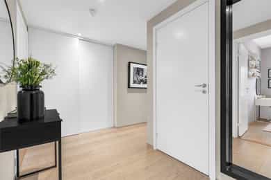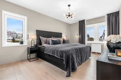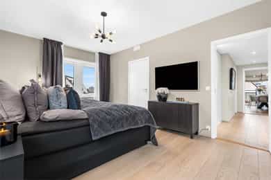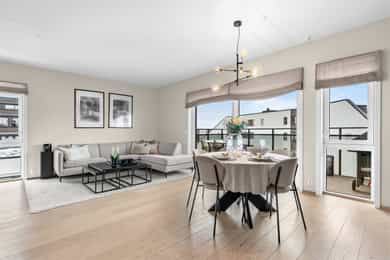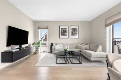 Nyere 4-roms med høy standard og svært god intern beliggenhet. Svært barnevennlig beliggenhet i rolige omgivelser. Leiligheten har en svært innholdsrik planløsning med blant annet vinduer på 3 sider, stor balkong, 2 bad og 3 soverom.