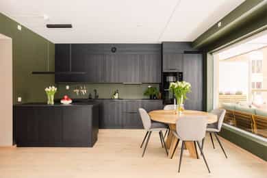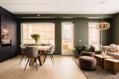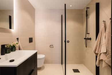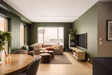 Dette er en gjennomført og påkostet 4-roms leilighet med moderne uttrykk og svært god planløsning. Leiligheten fremstår som eksklusiv og stilren, med store oppholdsrom, rikelig med lysinnslipp og kvalitetsvalg i alle ledd. To delikate bad, solrik balkong og fast garasjeplass gjør dette til en sjelden kombinasjon - perfekt for familien som ønsker både komfort, funksjonalitet og et moderne hjem i attraktive omgivelser. Høydepunkter: - Påkostet og svært moderne 4-roms - To lekre bad - ett tilknyttet hovedsoverom - Romslig og solrik balkong med gode møbleringsmuligheter - Stilrent kjøkken med integrerte hvitevarer og kjøkkenøy - Garasjeplass med elbillader - Heis og enkel adkomst - IN-ordning og avdragsfrihet til 2030 - Ved nedbetaling av fellesgjelden vil felleskostnadene utgjøre kr. 4 325,-