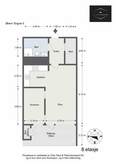 • Beliggende i 8. etasje-høyt, fritt og usjenert