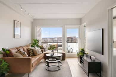 Lys, moderne og innbydende 2-roms med solrik balkong, utsikt og god standard. Leiligheten ligger i et nyere bygg fra 2011, med en skjermet og attraktiv beliggenhet på Økern. Her har du kort vei til servicetilbud, barnehager, skoler og svært gode kollektivforbindelser med både T-bane og buss.