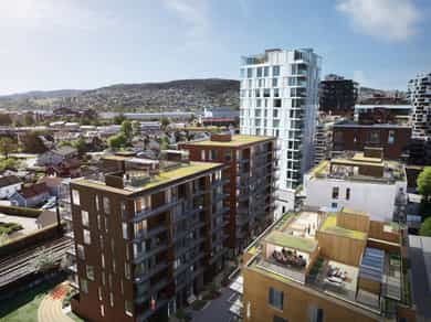 Leilighetens kvaliteter • Stor 4-roms topp- og hjørneleilighet - Egen privat takterrasse hvor pergola er inkludert i prisen • Ligger i 5. etasje med heis • Lun balkong på ca. 6,1 kvm • To bad og tre soverom • Stor og flott mastersuite • Luftig stue og kjøkken • Integrerte hvitevarer • Vannbåren gulvvarme • Enstavs parkettgulv • Sportsbod på ca. 5 kvm • Super beliggenhet i sentrum • Kun 12 min med tog til Oslo