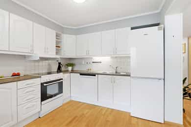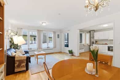 Luftig og pen 3-roms endeleilighet. Garasjeplass. Heis. Sentralt. For de over 50+. Felleskostnader inkl. mye!