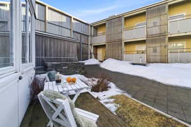 Velkommen til en luftig 3-roms ende-leilighet i attraktive Fagerenga Borettslag i Nedre Rønvik. Gjennomgående leilighet med en god planløsning som inneholder: Egen inngangsdør, entre, hall, stort flislagt bad, to romslige soverom, bod, luftig stue og kjøkken.Tidløst og fint kjøkken og en stue med gode møbleringsmuligheter. Fra stue er det utgang til en takoverbygget veranda -og en ekstra platting med fine solforhold. Gode lagringsmuligheter i flere skap og to boder. -Rolig nabolag med et trivelig bomiljø, for deg over 50 år. -Fellesstue for arrangementer og gjesteleilighet. -Treningsrom og hobbyrom m.m i brl. -Felleskostnadene inkluderer det meste. -Garasjeplass og heis. -Ingen TG3 i tilstandsrapport. -Kun 2,5km til Bodø sentrum. -Svært kort gange til dagligvarebutikker og mer. Vi ses!