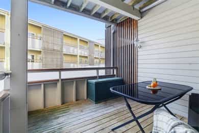 Fine solforhold på balkong fra morgen til tidlig ettermiddag.