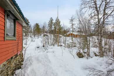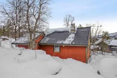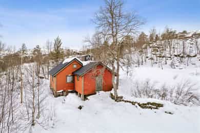 Adkomst via sti. Ikke bilvei frem til hytten. Veien stopper ca. 20 meter fra tomtegrensen.