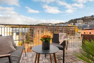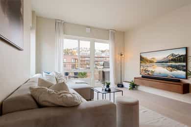 Lys og attraktiv 3-roms hjørneleilighet i 6. etg m/heis og balkong - Garasje m/lader - IN-ordning - Alt inkl. i FK