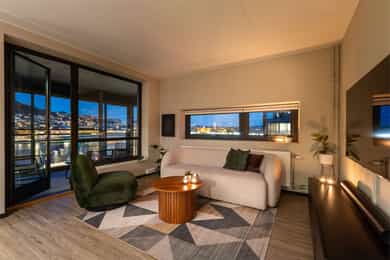 Velkommen til Jernbanegata 4! Dette er en flott 3-roms hjørneleilighet med svært sentral og pendlervennlig beliggenhet på Strømsø. Høydepunkter: - 2 soverom - Heis - Stor innglasset balkong - Nydelig utsikt mot elva - Romslig stue og spisestue - Nytt kjøkken fra HTH i 2024 - Oppgraderte overflater i 2024 - Parkering i garasje med elbil-lader - Medfølger bod i felles garasjeanlegg - A konto fjernvarme inkludert i fellesutgifter - Meget pendlervennlig beliggenhet med tog- og buss rett utenfor døren - Enkel tilknytning til alt av servicetilbud og byfasiliteter