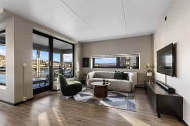 Lekker 3-roms hjørneleilighet med innglasset balkong - Kjøkken fra 2024 - Heis - Garasje - Tog/buss rett utenfor døren