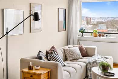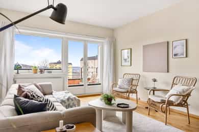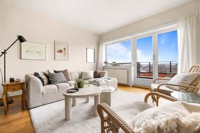 Lys og delikat 3-roms sydvendt balkong med vidstrakt utsikt - Heis- varmtvann og fyring inkl. - Attraktivt og sentralt!